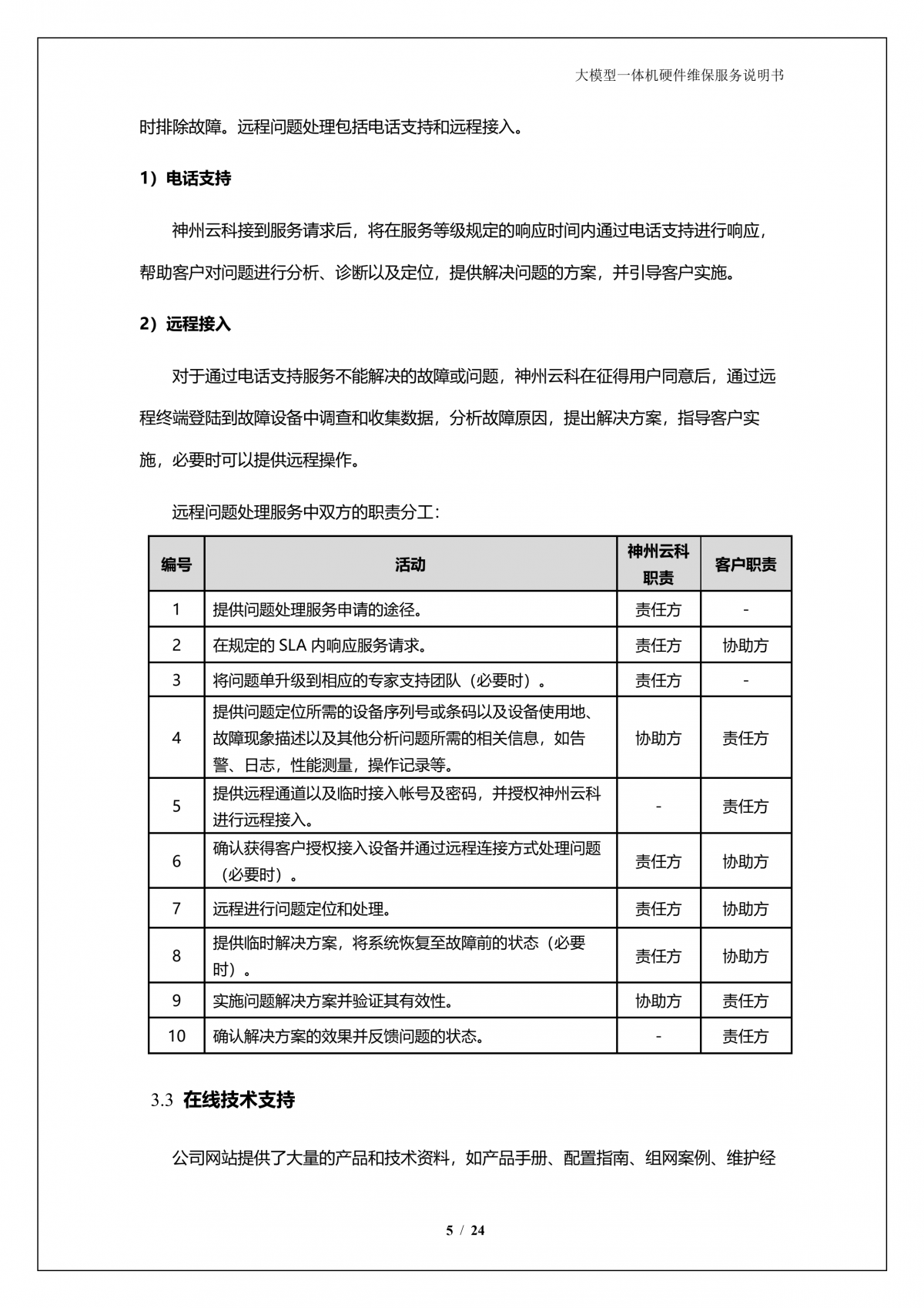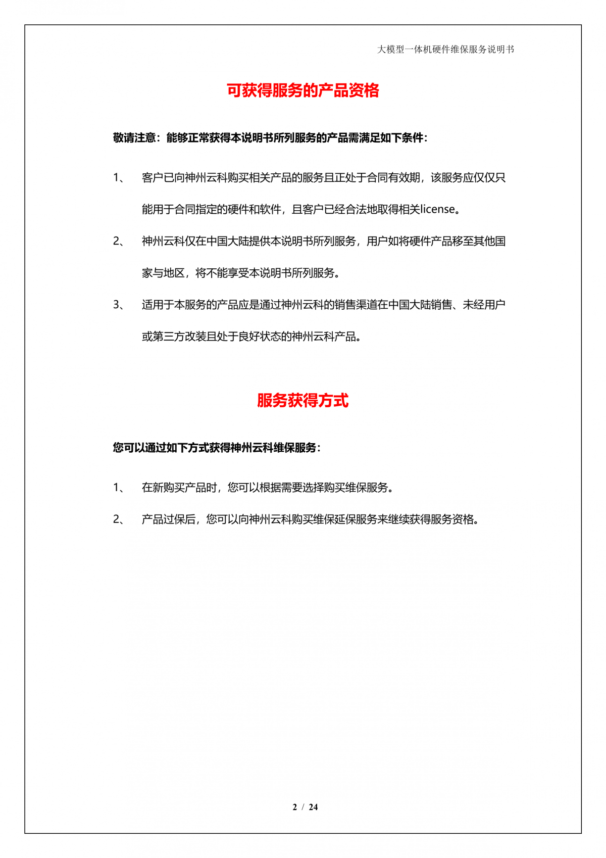 尊龙凯时z6comA924 DS大模型一体机硬件维保服务说明书_V1.1